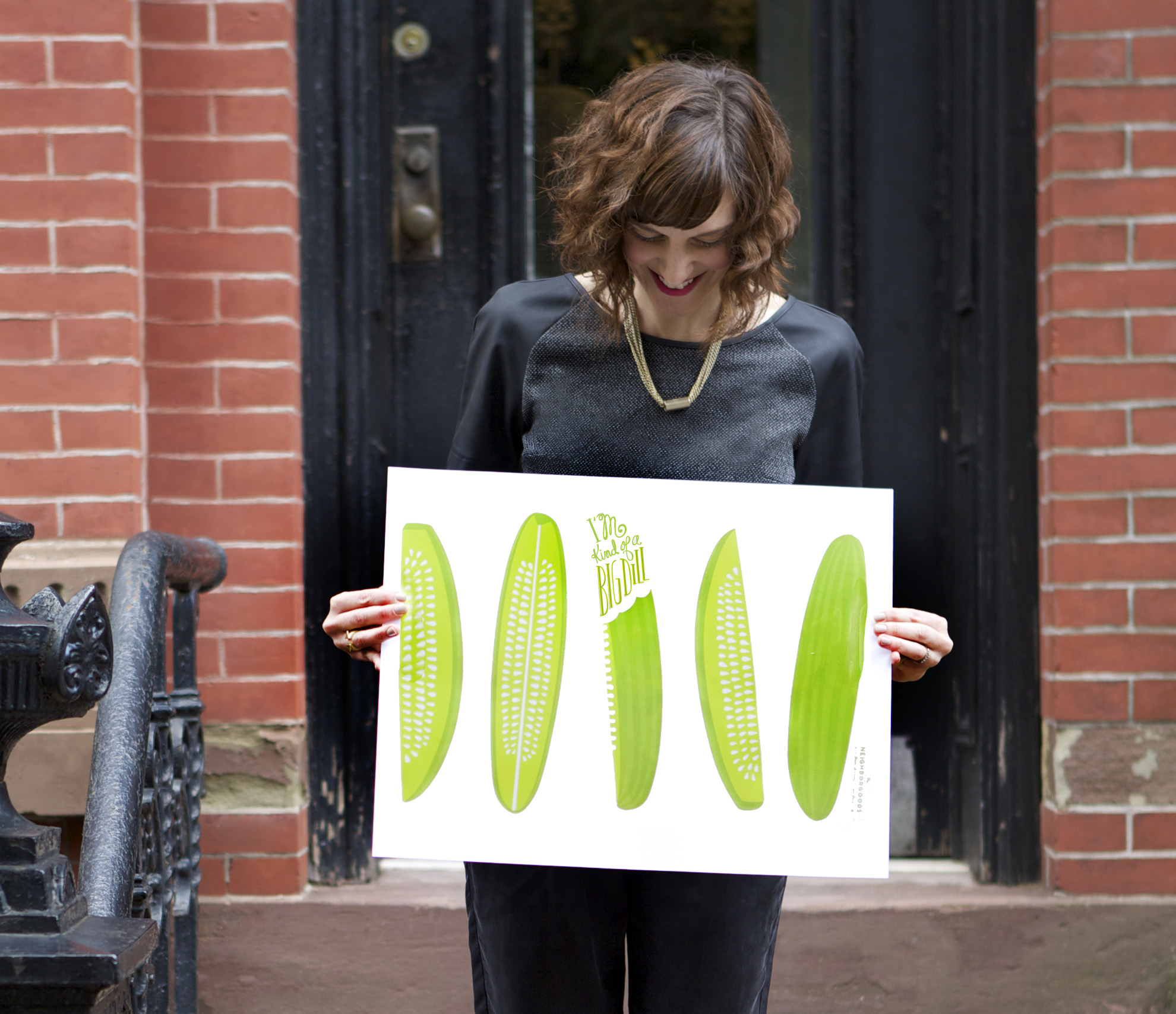 Jodi has also found another way to express her creativity beyond her design business. “Within the last year I started The Neighborgoods — my screen printing business.” Jodi leaped up to give me the tour of her products. I was impressed by the eclectic collection of dishtowels and posters. They were perfectly playful, bold and humorous; I could immediately imagine them in a sun-lit Brooklyn kitchen.